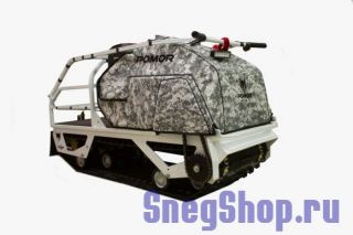 Четырёхтактный двигатель мощностью 15 л.с. в паре с трансмиссией серии PRO позволяет уверенно перевозить грузы до ~700 кг и поддерживать стабильный ход на рыхлом и плотном снегу, а также по грунту межсезонья. Топливный бак на 5.6 л обеспечивает до ~2 часов непрерывной работы при среднем расходе порядка 3 л/ч.