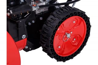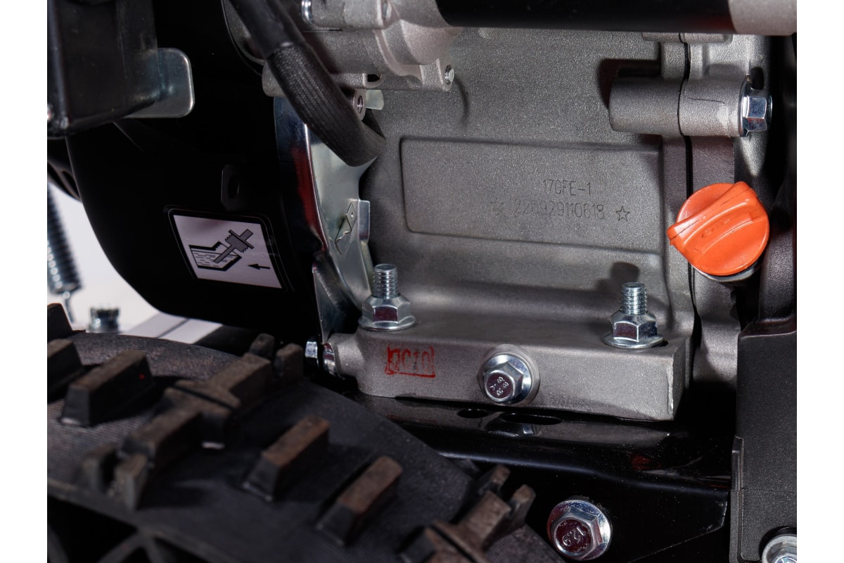 Бензиновый мотор с воздушным охлаждением (196 см³) стабильно работает в мороз и обеспечивает тягу на плотном насте.